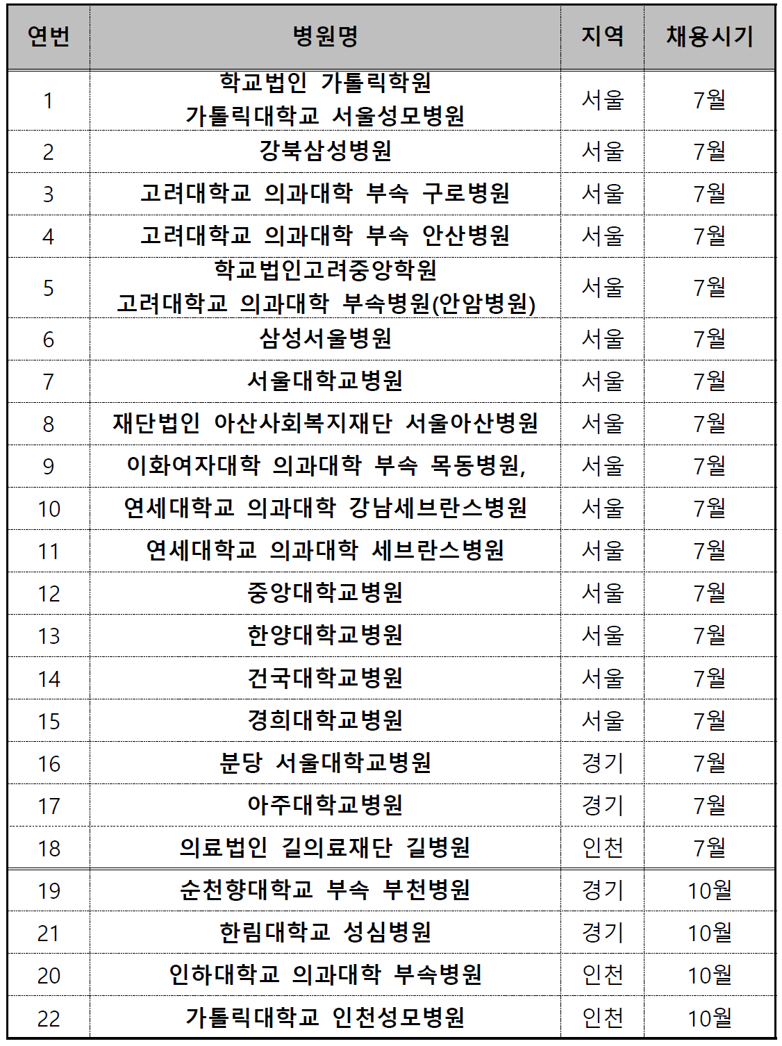 2024년에 수도권에 위치한 22개 상급종합병원에서 신규간호사 채용을 위한 최종 면접이 동기간에 실시될 예정입니다. 이 계획은 중소병원의 인력 공백을 최소화하기 위한 방침이라고 발표했습니다.