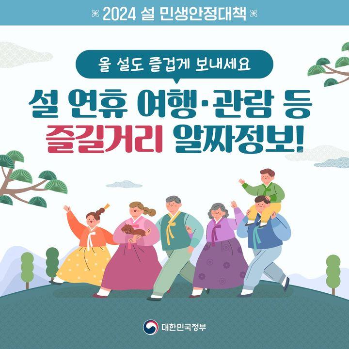 2024년 설 명절이 일주일 앞으로 다가왔습니다. 설 명절에 가족들과 친구들과 즐길거리 찾으시는 분들이 많으실텐데요, 정부는 이번 설 연휴를 맞아 여행과 관람, 휴가비 지원 등 다양한 정책을 준비했다고 해서 알아보겠습니다.