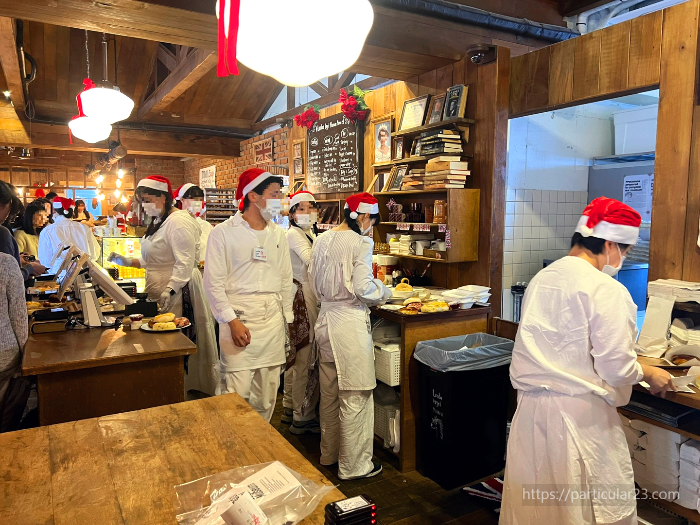 점원들이 산타 모자를 쓰고 있으니