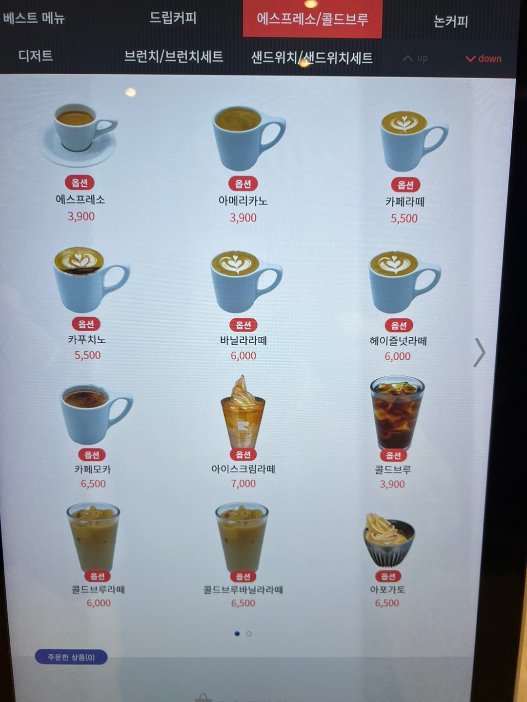 오늘은 디카페인 브라질 원두를 선택하고