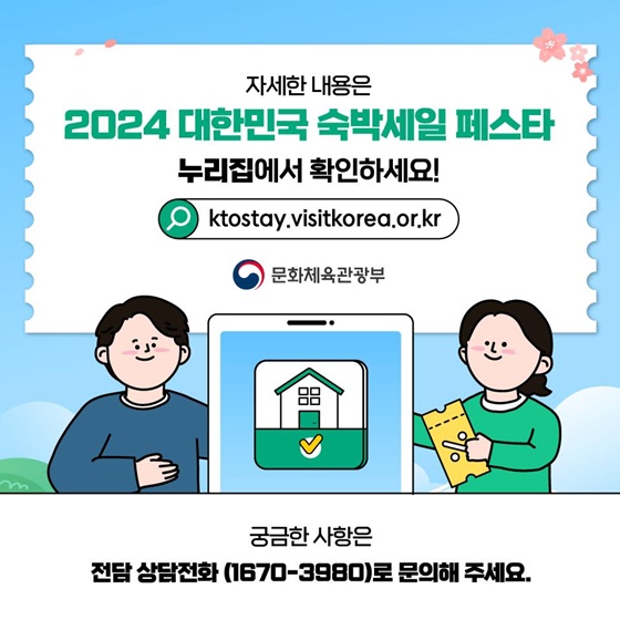 자세한 사항은 2024 대한민국 숙박세일 페스타 누리집에서 확인하시기 바랍니다.