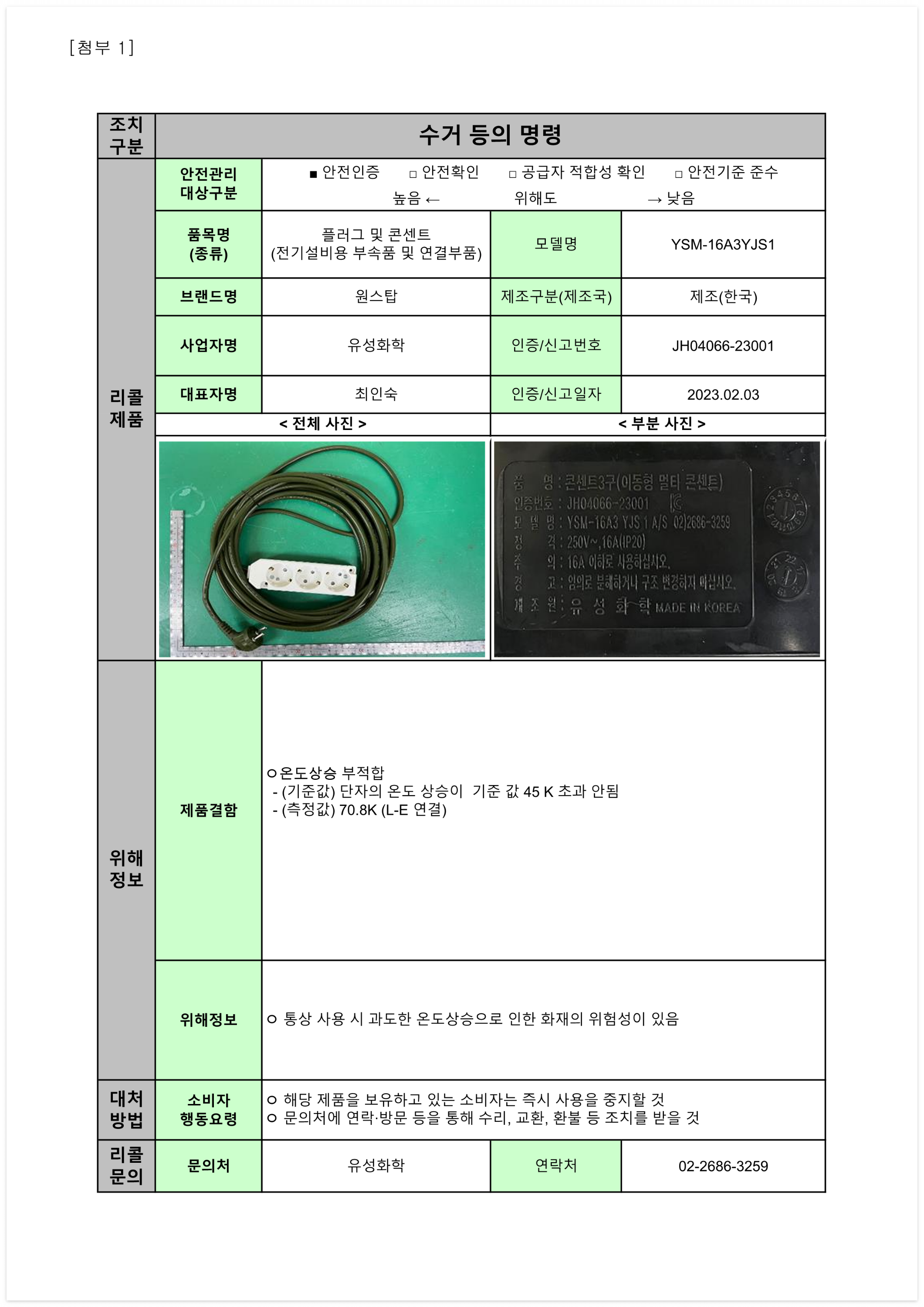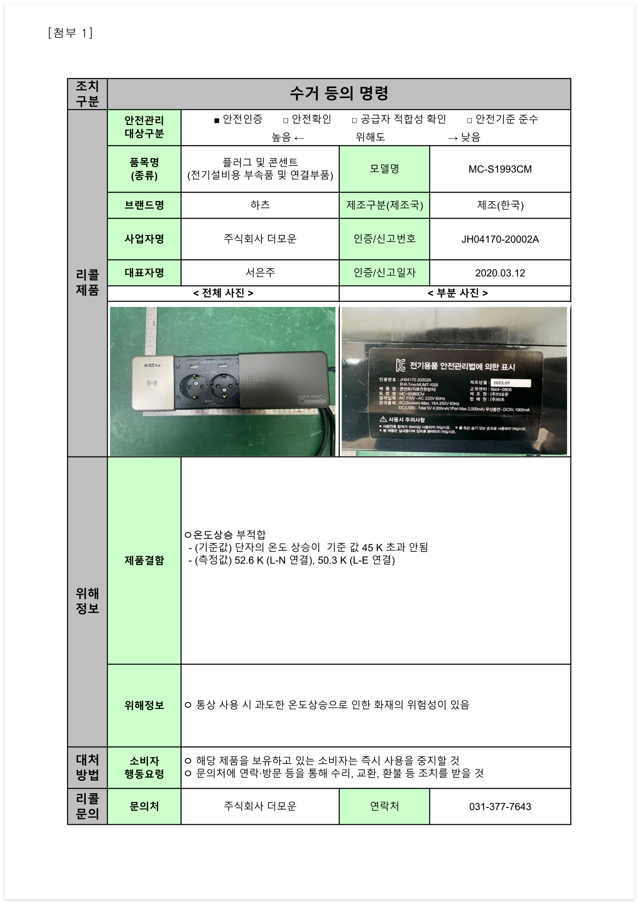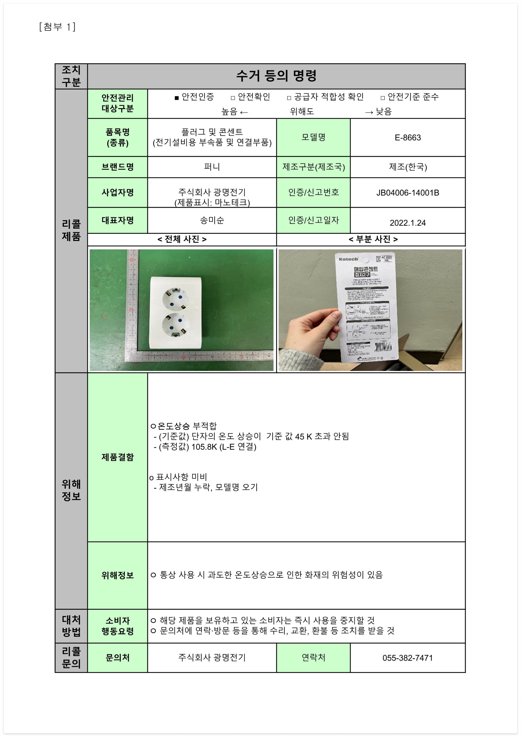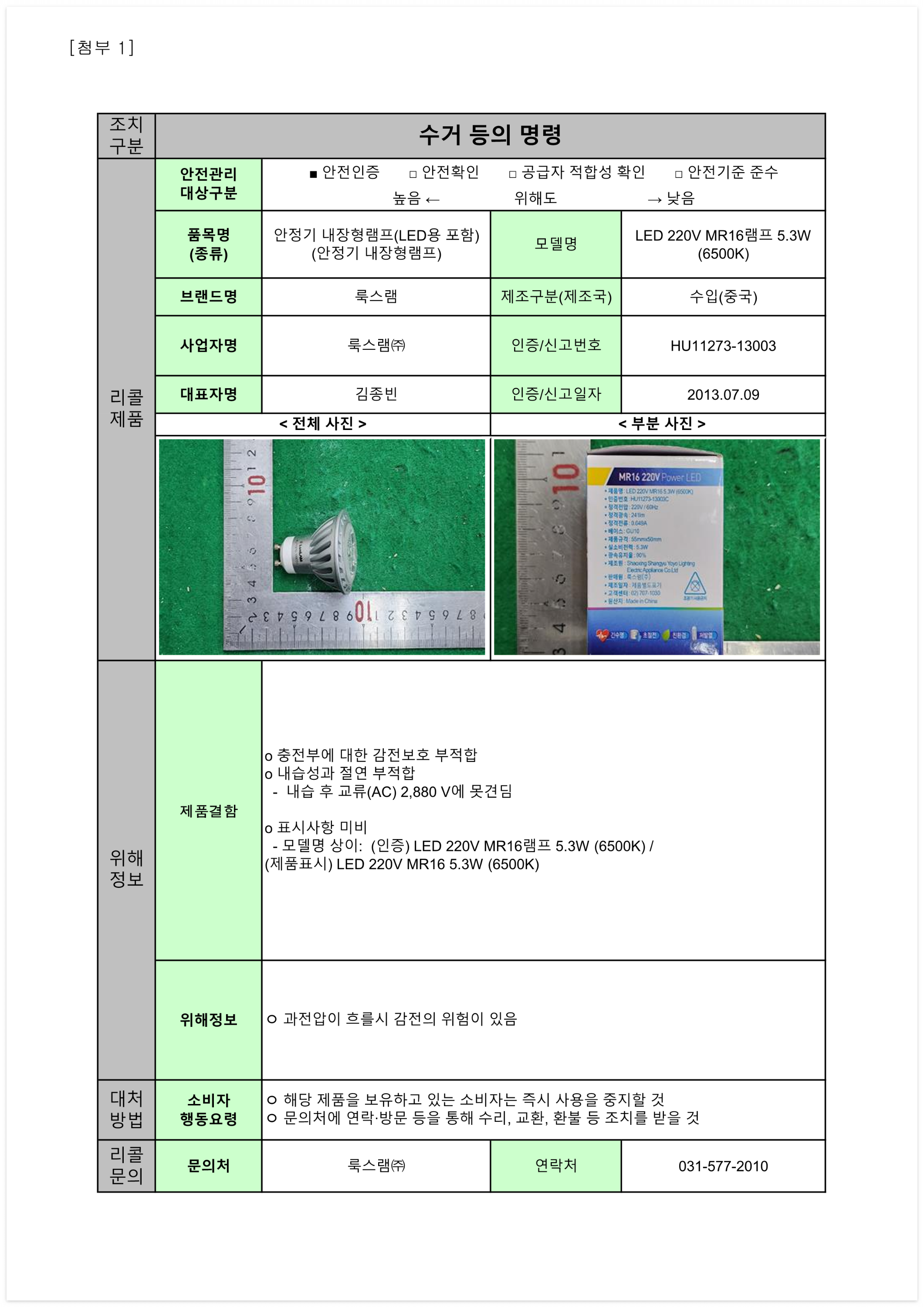1. 학용품 및 완구 리콜명령