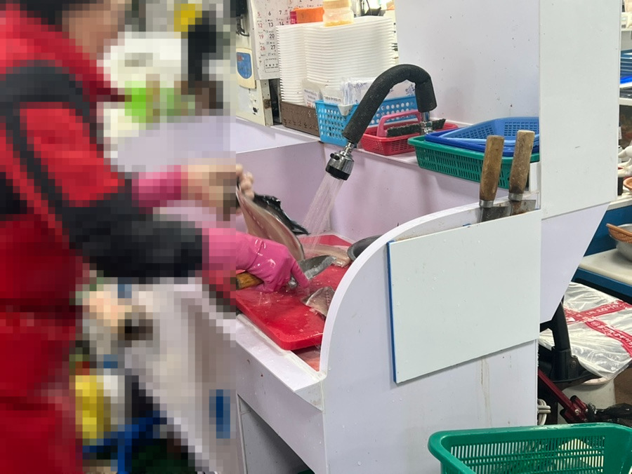 소방어 한마리 골라서 그자리에서 회를 떴다