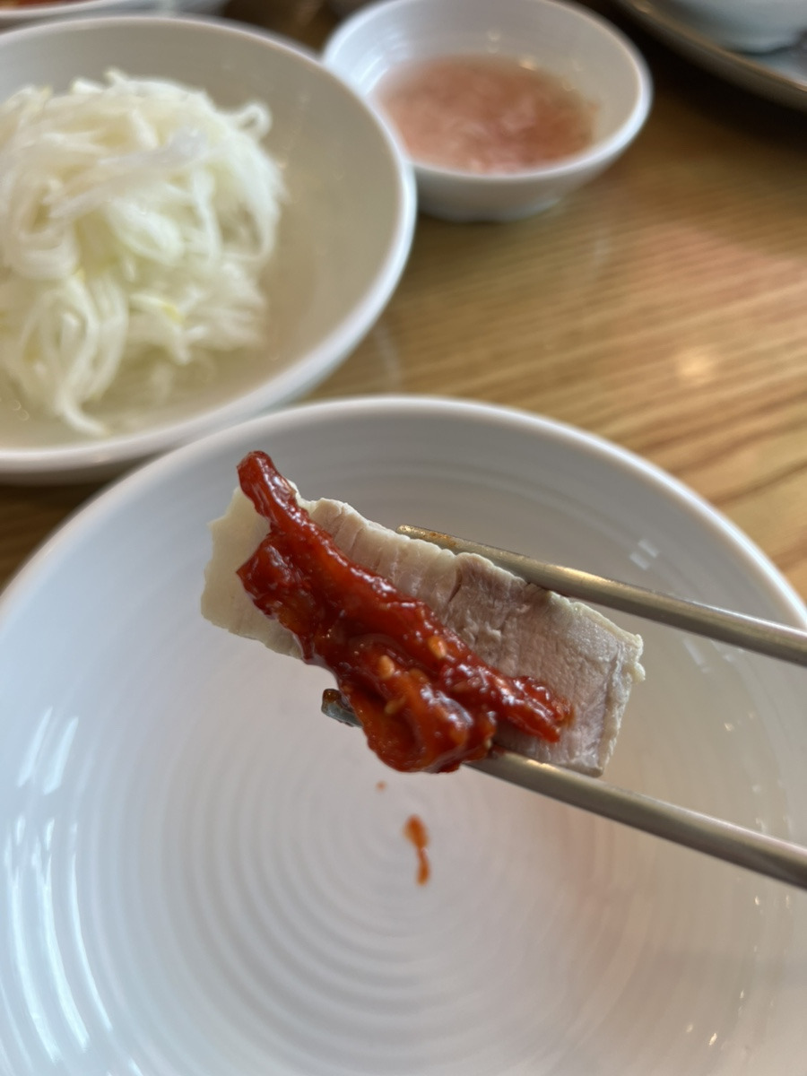 삼겹살 부위로 작고 얇게 썰려 나와 먹기 좋고, 같이 나온 무절임과 궁합도 최고였습니다.