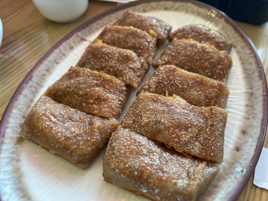 ✔ 전병: 쫄깃한 피 + 매콤한 김치소