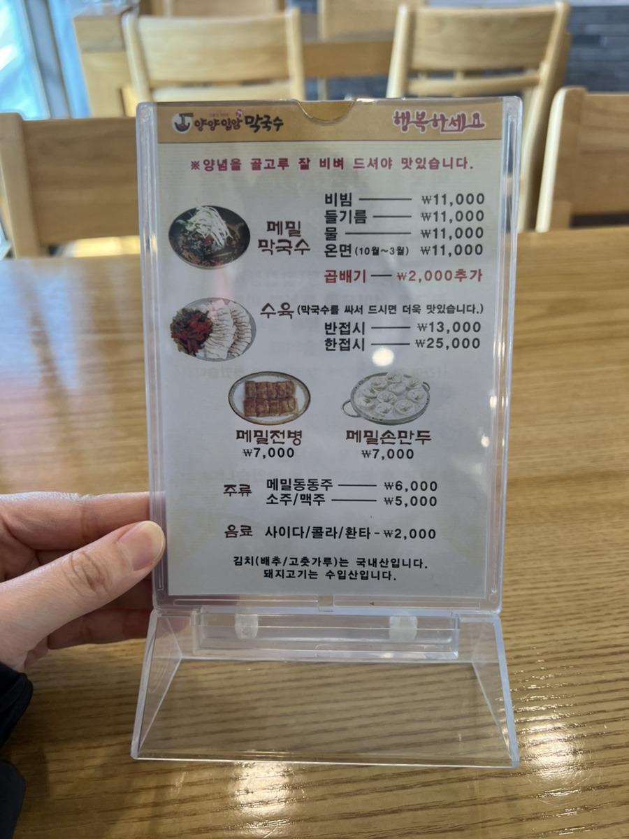 위치는 양양이 아닌 북한산 국립공원 근처지만, 맛은 강원도 그 자체. 강원도 출신 가족이 자주 가는 단골 막국수집만큼 만족도가 높았습니다. 넓은 주차 공간, 쾌적한 홀, 빠른 회전율까지—맛집의 모든 조건을 갖췄습니다.