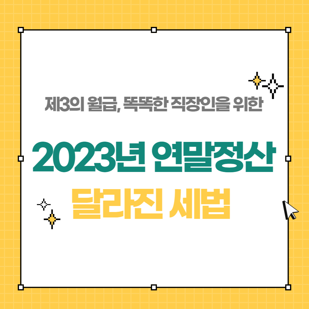 어느덧 2023년 한해를 앞두고 있습니다. 직장인이라면 '2023년 연말정산' 을 준비해야하는데요,직장인들의 제 3의 월급 '연말정산'을 위해 2023년 달라진 세법 기준을 알아 보았습니다.