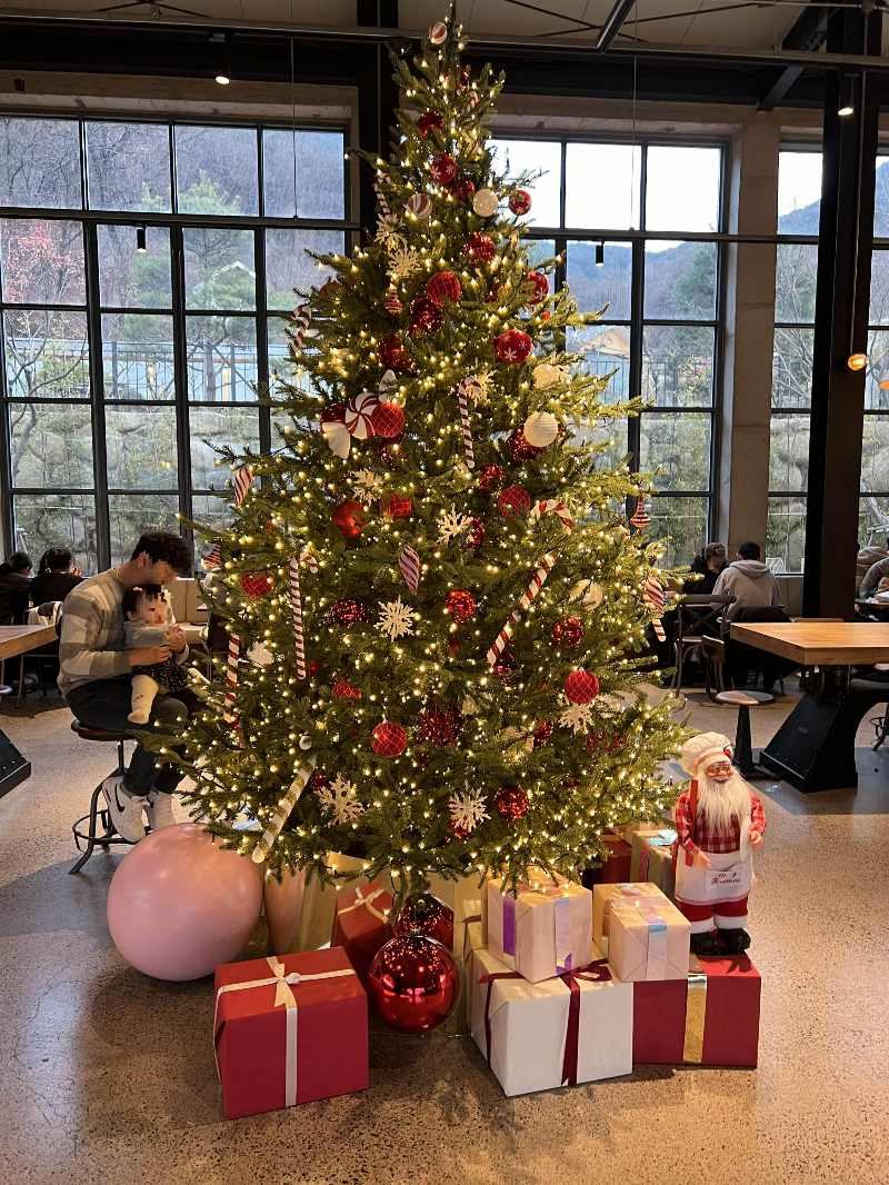 매장 내 트리와 따뜻한 분위기가