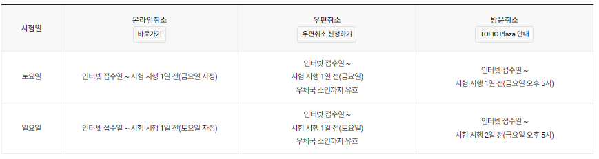 토익 TOEIC 취소방법 및 기간