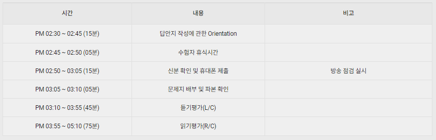 - 시험시간이 오후일 경우 PM 2:20까지 입실(PM 2:50 이후 절대 입실 불가)