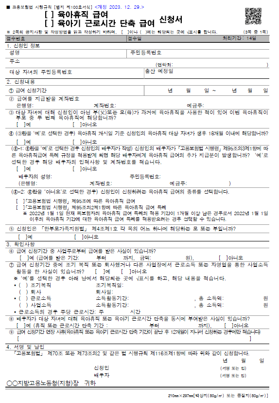 구비서류 육아휴직 급여 신청서