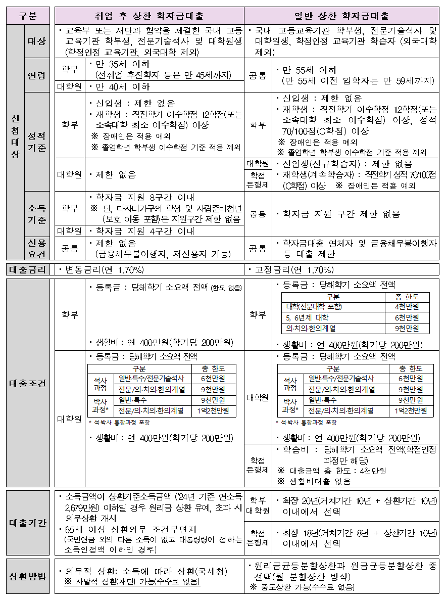 • 2024년 7월 1일부터 기초‧차상위‧다자녀 가구 대학생은 재학기간과 상환 의무 발생 전까지 이자 면제