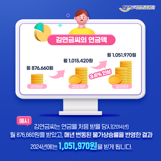 따라서 2024년 국민연금은 전년도 물가상승률을 반영하여